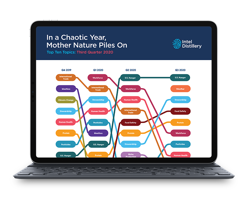 Six days a week since 2012, the Bader Rutter team has systematically analyzed input from the top 1,500 voices in the food and beverage industry, cataloging and assessing the content. Our reports provide perspective on emerging topics and trends that will drive the food production system.