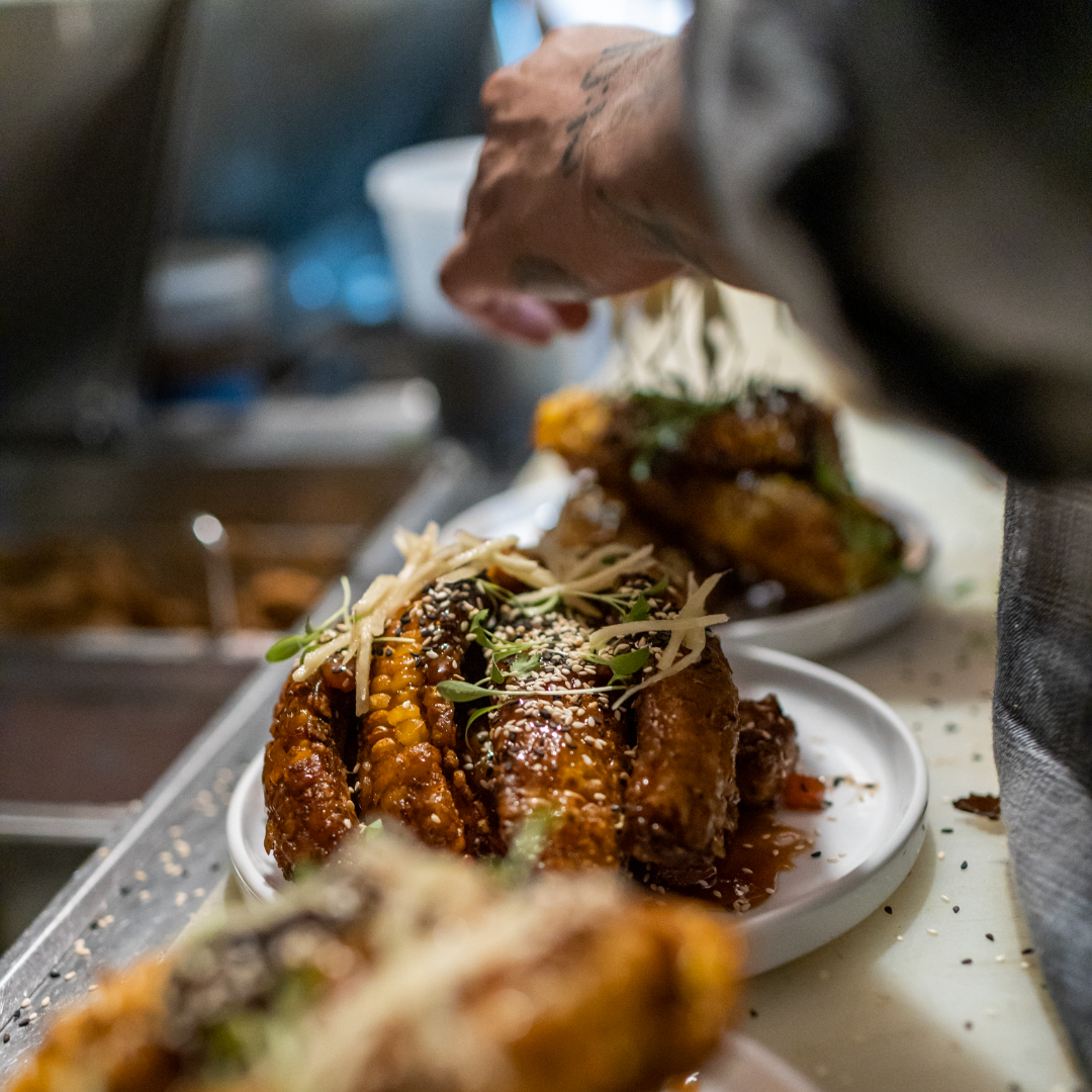 It was a playful evening of craveable dishes, lots of laughs, and layers and layers of flavors loved by all. And after three courses of six singular creations featuring Cauli W’ngz, Bruss’lz and Corn R’bz, there was hardly a crispy crumb left on the plates.