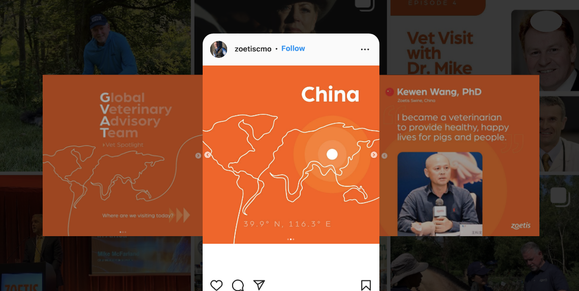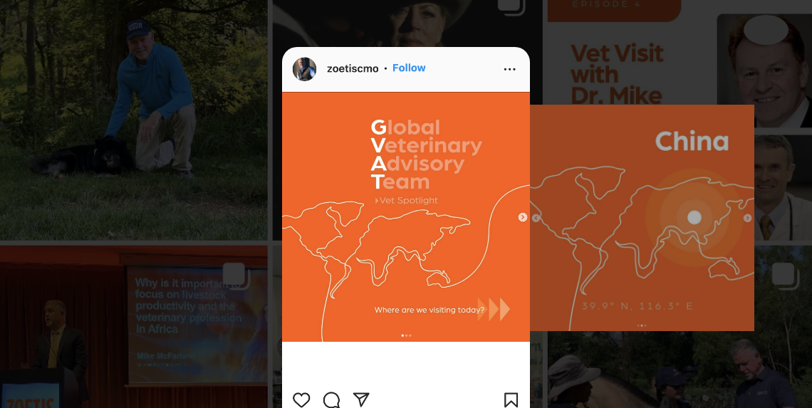 For Zoetis, we helped create a global platform including an Instagram page, LinkedIn presence and custom website for its Chief Medical Officer, Dr. Mike. His platform is all about veterinarian advocacy at the intersection of science and care. This effort leverages a decades-long career devoted to elevating the importance of the human-animal bond. The mission of nurturing the next generation of veterinarians is both a personal and professional passion for him and is essential for Zoetis.