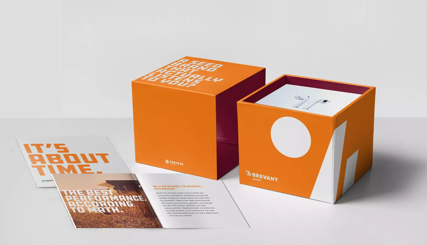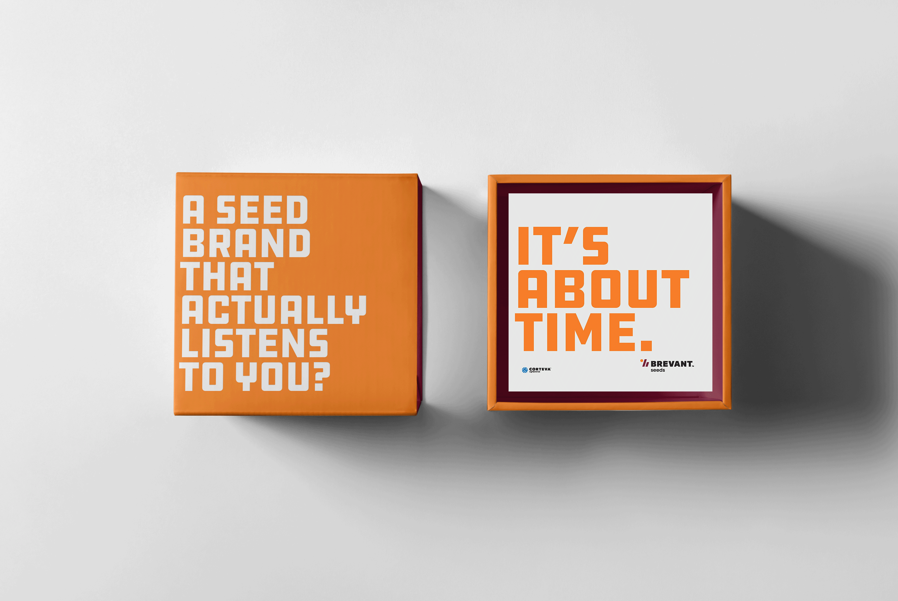 We created a direct mail piece for key retailers that included a pair of AirPods and text message with link driving to their peers discussing what they want in a seed brand. The box also included an overview booklet for Brevant® seeds.