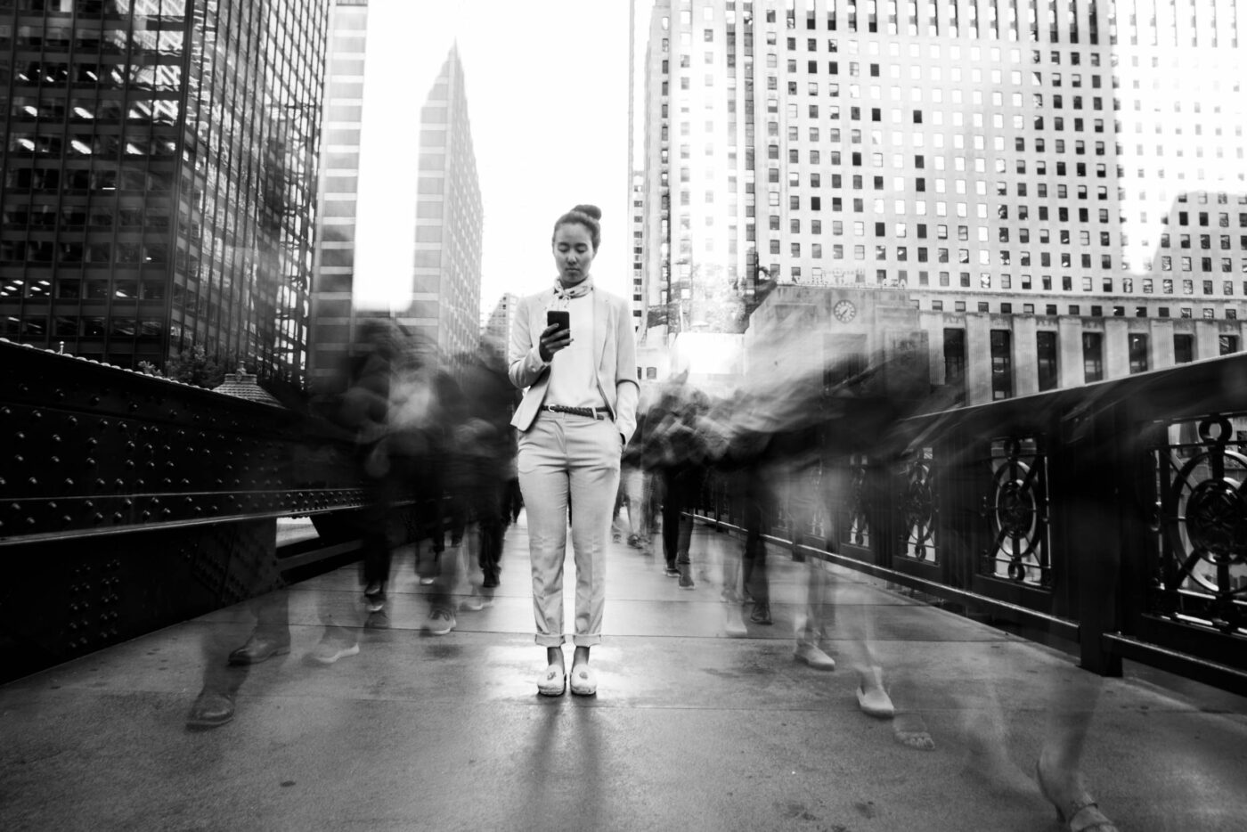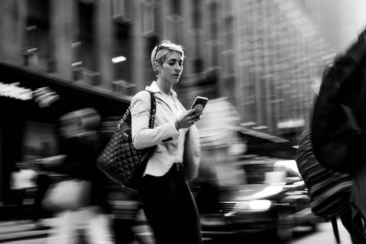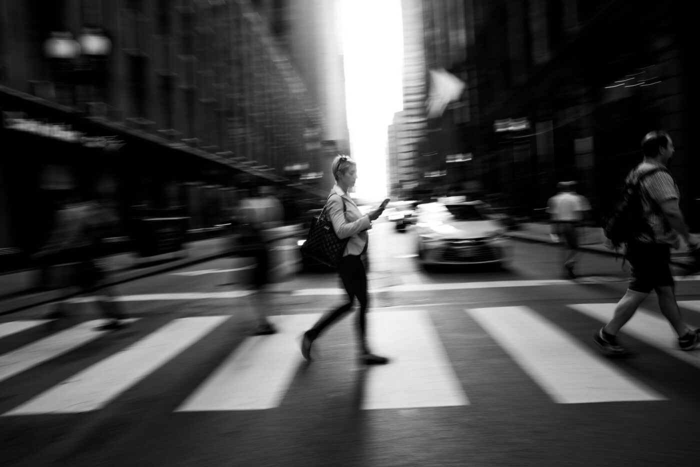 Over two days in Chicago, we generated more than 300 black-and-white images for advertising, social media and presentation decks. Using motion blur and select focus, the shots capture a distinctive look of mobile tech in constant motion.