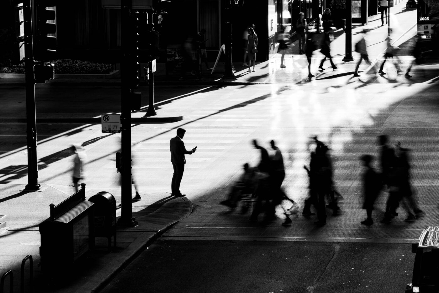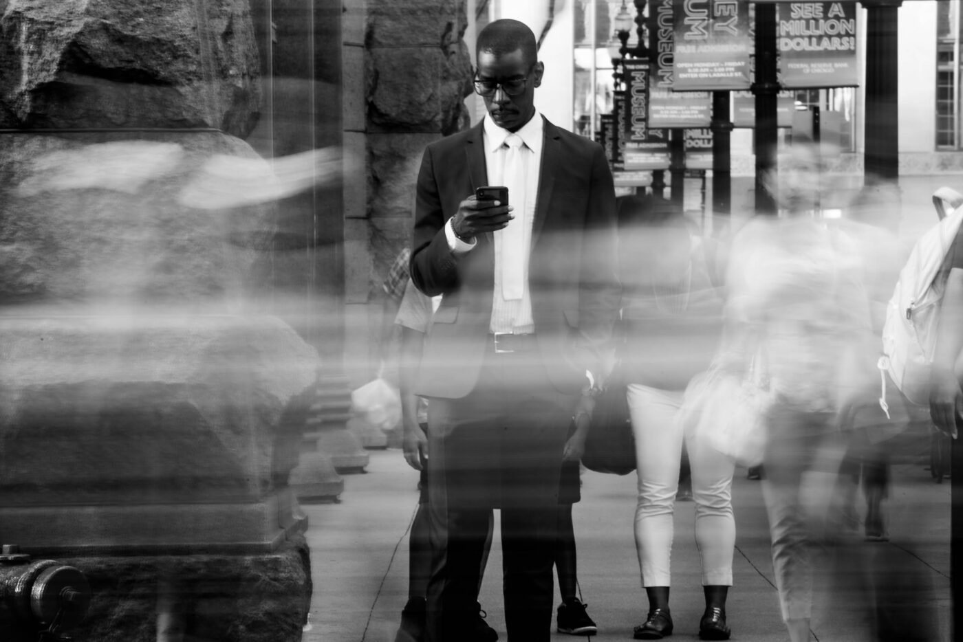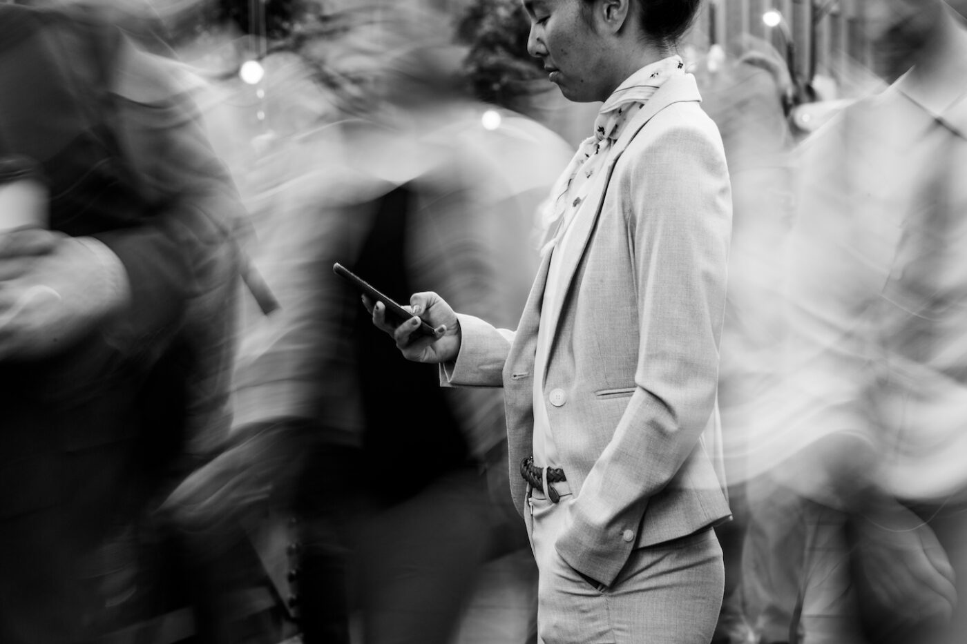 Over two days in Chicago, we generated more than 300 black-and-white images for advertising, social media and presentation decks. Using motion blur and select focus, the shots capture a distinctive look of mobile tech in constant motion.